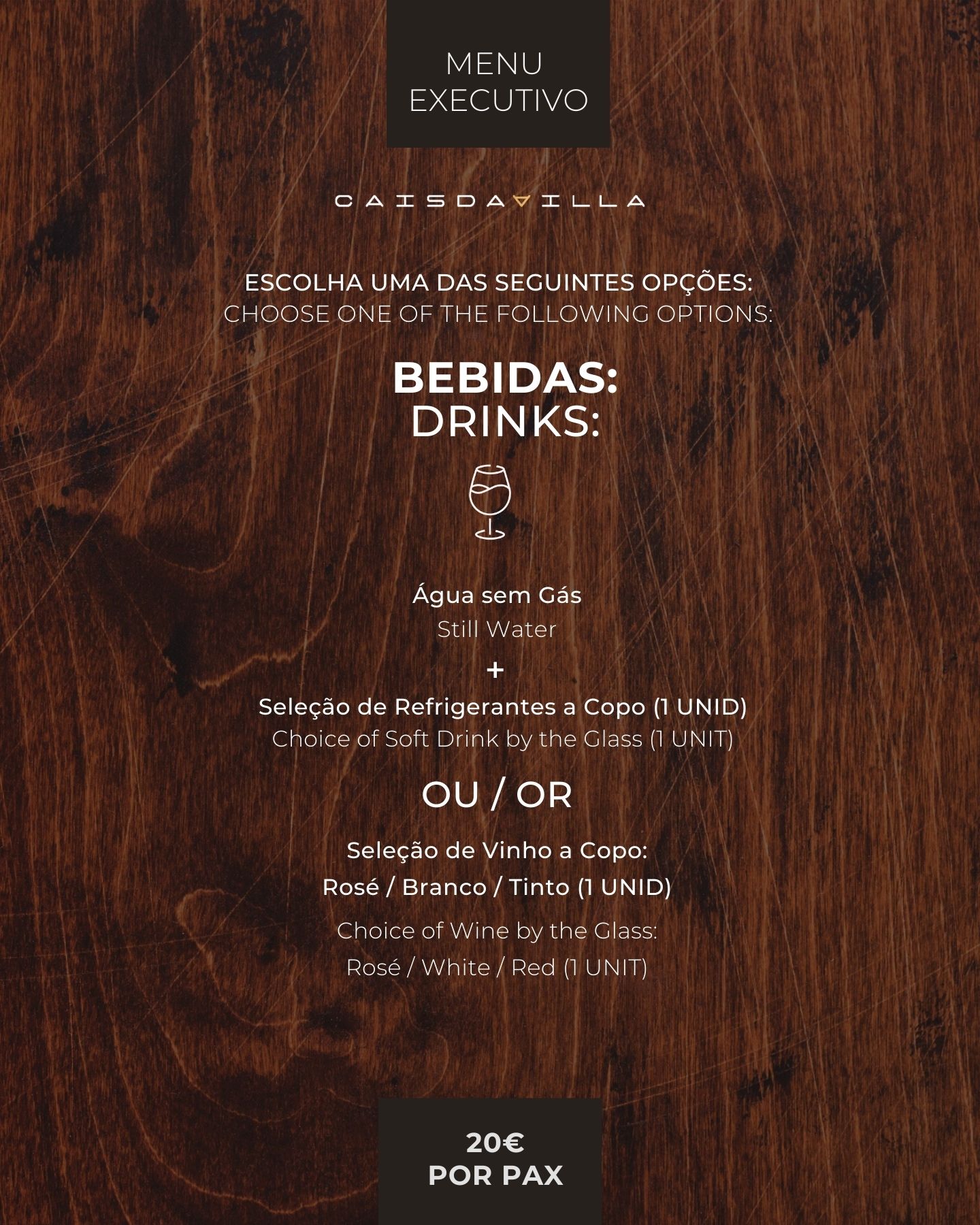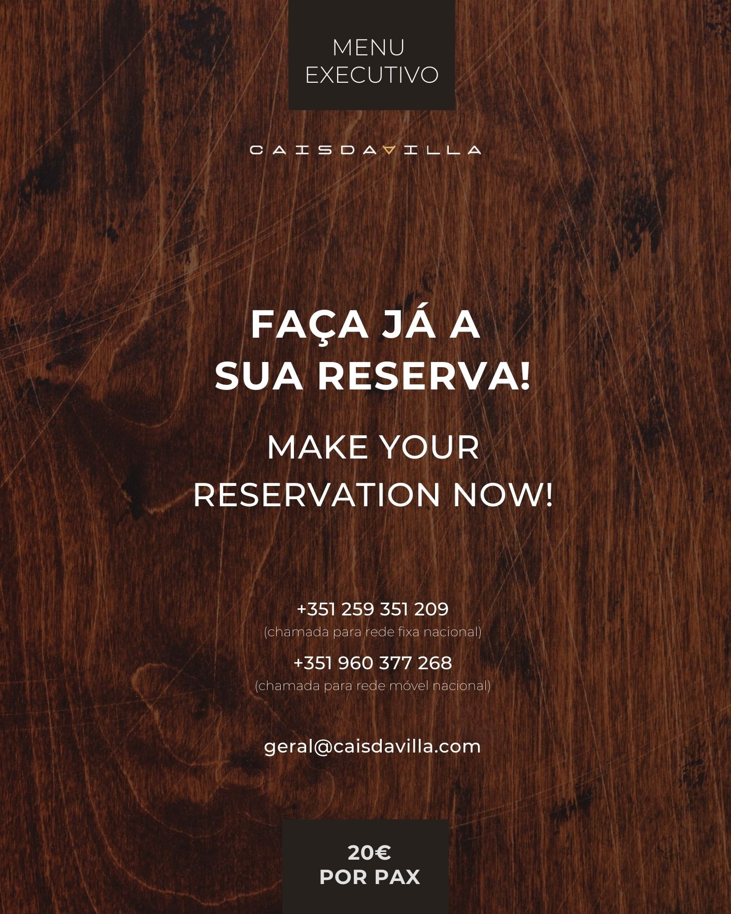 No Cais da Villa, acreditamos que cada refeição é uma oportunidade para celebrar a qualidade, o detalhe e o prazer de bem receber. O Menu Executivo foi concebido precisamente com esse propósito: proporcionar um momento especial, mesmo nos dias mais corridos.