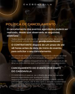 a. Se cancelado depois a contratante perderá o direito ao sinal entregue aquando da formalização do pedido de evento.