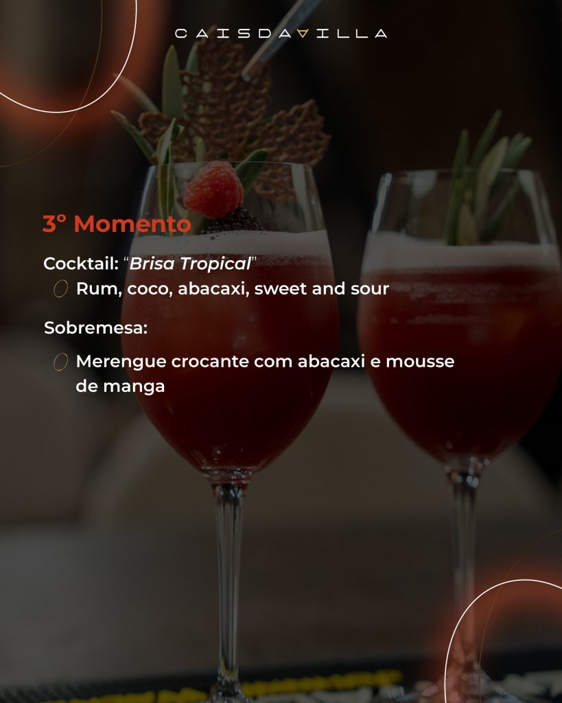 1.Todas as bebidas apresentadas fazem parte do menu até o serviço de sobremesa.